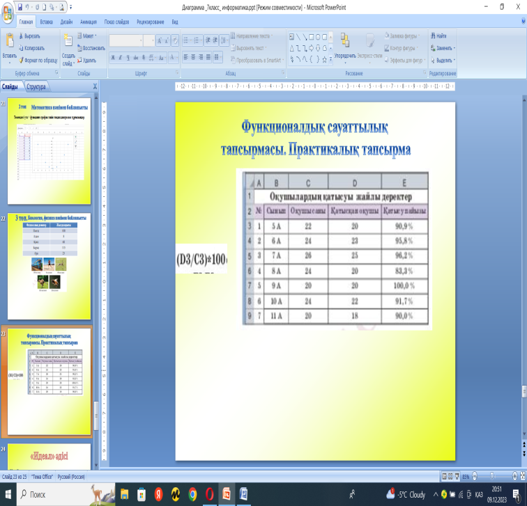 2-тапсырма 9 мектептегі оқушылардың үйірмелерге қатысатын оқушы саны, олардың пайызын есептеп шығарыңдар. (Функционалдық сауаттылыққа бағытталған) |