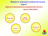 Мұғалім қосымша түсіндіреді. Бейнебаян арқылы сабақтың тақырыбы мен мақсатын айқындайды. Тиімділігі жаңа материалмен таныса отырып,түртіп алу жүйесімен мәлімет жинайды,сараптайды, бағалайды. |