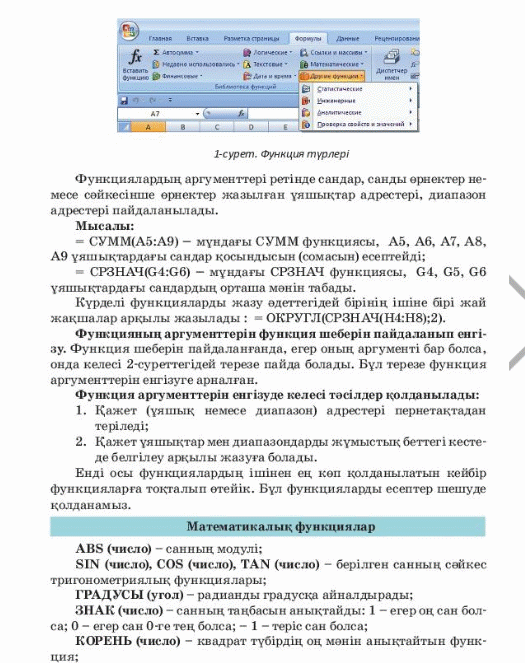 8.2.2.3 электронды кестені қолдана отырып есептерді шешуде кіріктірілген функцияларды қолдану |