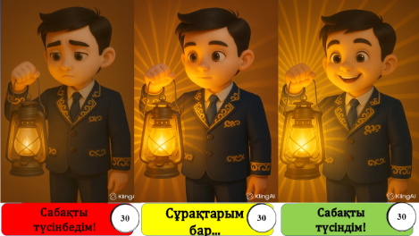 Сабақтың мақсатын мұғаліммен бірге ашу, сұрақтар туындаса мұғалімнің көмегіне жүгіну