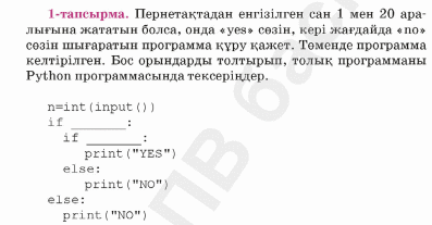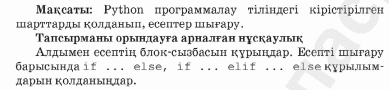 7.3.3.2 Python программалау тіліндегі кірістірілген шарттарды қолдану. |