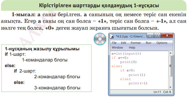 7.3.3.2 Python программалау тіліндегі кірістірілген шарттарды қолдану. |