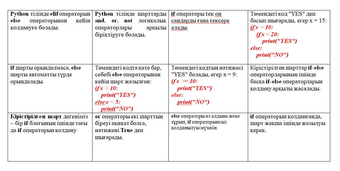 7.3.3.2 Python программалау тіліндегі кірістірілген шарттарды қолдану.