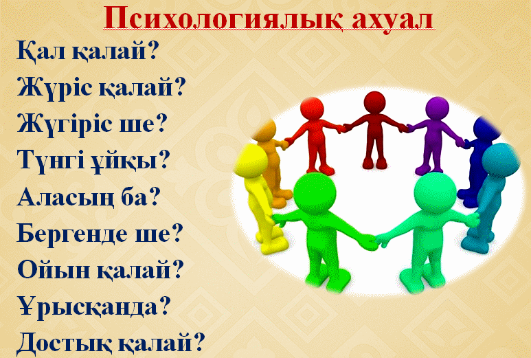 Көңіл-күйлері көтеріліп, бір-біріне жақсы тілектер айтады 1-тапсырманы орындау арқылы бүгінгі сабақтың тақырыбы болжанады