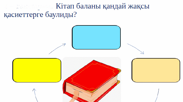 упайын ортаға саладыымән бер. Қілімің дәм татып өсіп өнер2-топ Кітаптың пайдасы мен зияны жайында шағын әңгіме жаз. 3-топ Мақал –мәтел айту Оқу тапсырмасы. Өзің оқып жүрген кітапты жарнамалауға, кітаптың қызық жерінен сыныпта үзінді оқуға дайындал. Еркін микрафон «Есікті таңда» әдісі 1.Сабақтың қай бөлігі қызық болды? 2.Кітап оқудың пайдасын үш сөзбен айт. 3.Неліктен кітапты«асыл қазына»деп атаймыз? ЖИ Рефлексия Еркін микрафон