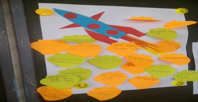 - Барлығымыз мына қағаздарға жазып тақтадағы зымыранға
