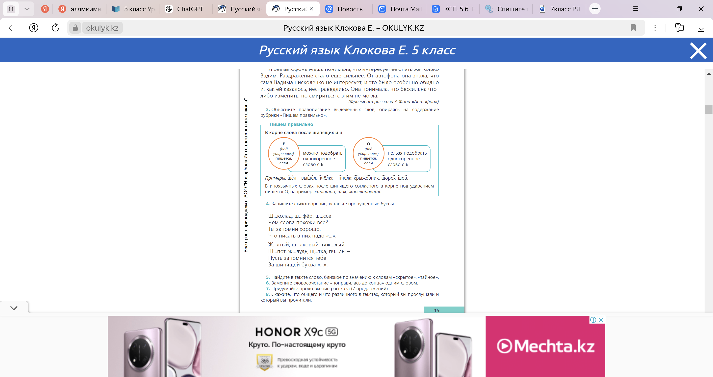 5.2.2.1 определять основную мысль на основе содержания и композиции; 5.2.3.1 понимать применение прямого и переносного значения слов, синонимов, антонимов, омонимов и многозначных слов, синтаксических единиц, использованных автором в тексте для различных целей; 5.4.1.1 правильно писать гласные и согласные в корне слова, НЕ с именами существительными, прилагательными, отрицательными местоимениями, числительными, глаголами, а также окончания в разных частях. |