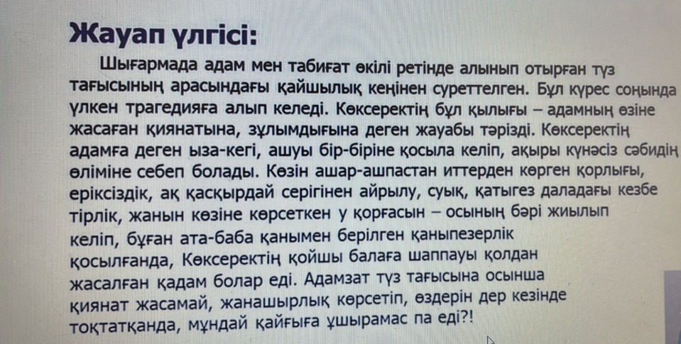 5-тапсырма. Шығармадан қандай ой түйдіңіз? Өз ойыңызды жазыңыз.