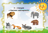 Ал енді « Жүрдек пойыз» ойынын ойнайық. -Балалар барлығымыз пойызға отырып жолға шығайық. 1.пойыз арқылы 1- бекетке келдік Слайд 1