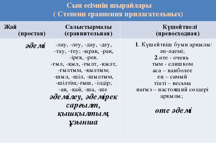 нөмірлерін есіңе сақта: Тілдік бағдар. Сын есімнің шырайлары