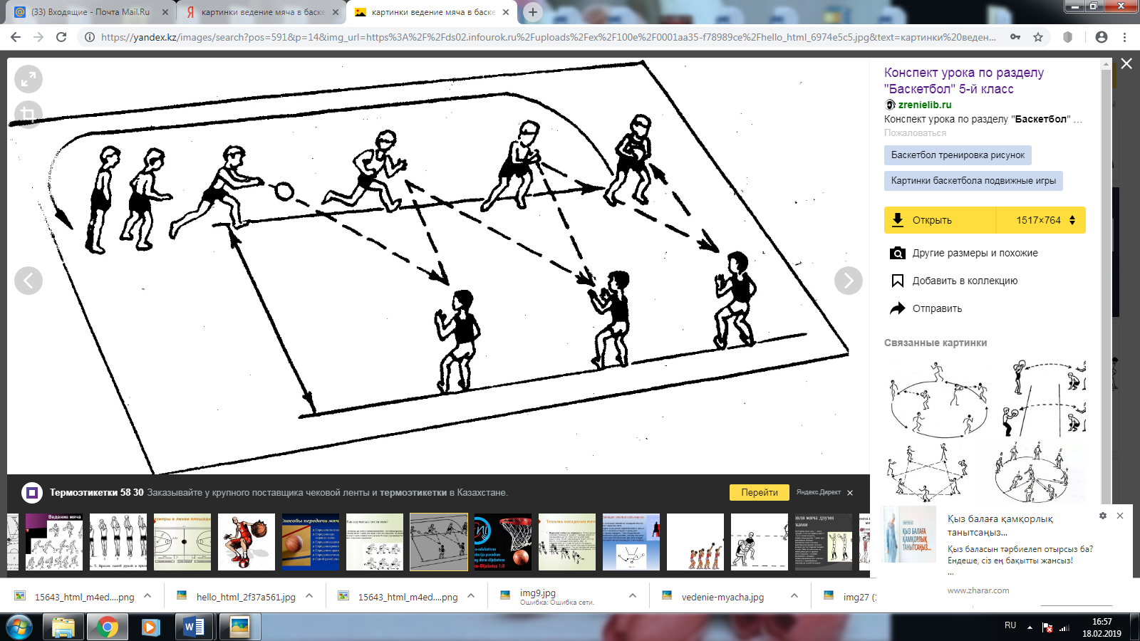 Жеке жұмыс. Оқушыларға сұрақтар: -Тақтада не көрсетілген? Қандай ойын техникасы көрсетілген? -Оқушылар жауап береді, сабақтың тақырыбын ашады. 2. Практикалық жаттығулар: 1.«Линиямен допты алып жүру»