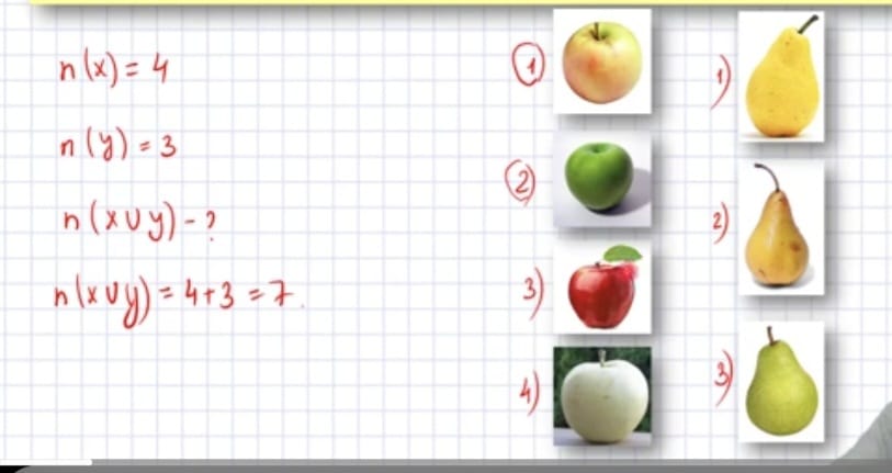 Мысалы: Сыныптың барлық оқушылары жүзумен немесе тенниспен айналысады. 12 оқушы жүзумен, 15 оқушы тенниспен , 7 оқушы жүзумен және тенниспен айналысады. Сыныпта қанша оқушы бар