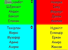 І.Ұйымдастыру кезеңі: а) Оқушылармен сәлемдесу, түгендеу. Психологиялық жағымды ахуал туғызу үшін «Бір тілек» әдісін пайдаланып, оқушылар бір- біріне тілек ұсыну Топтарға біріктіру
