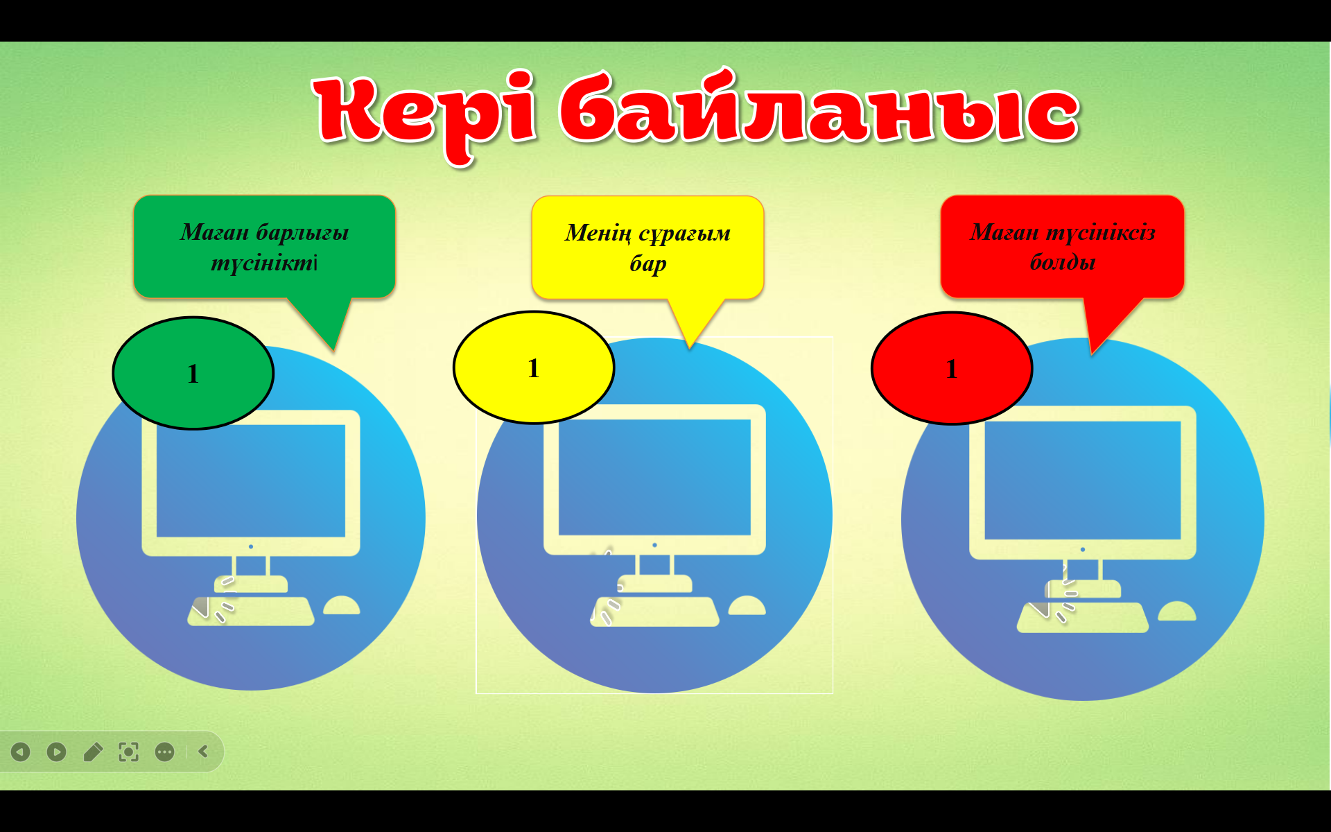 Кері байланыс. Презентация арқылы кері байланыс береді.