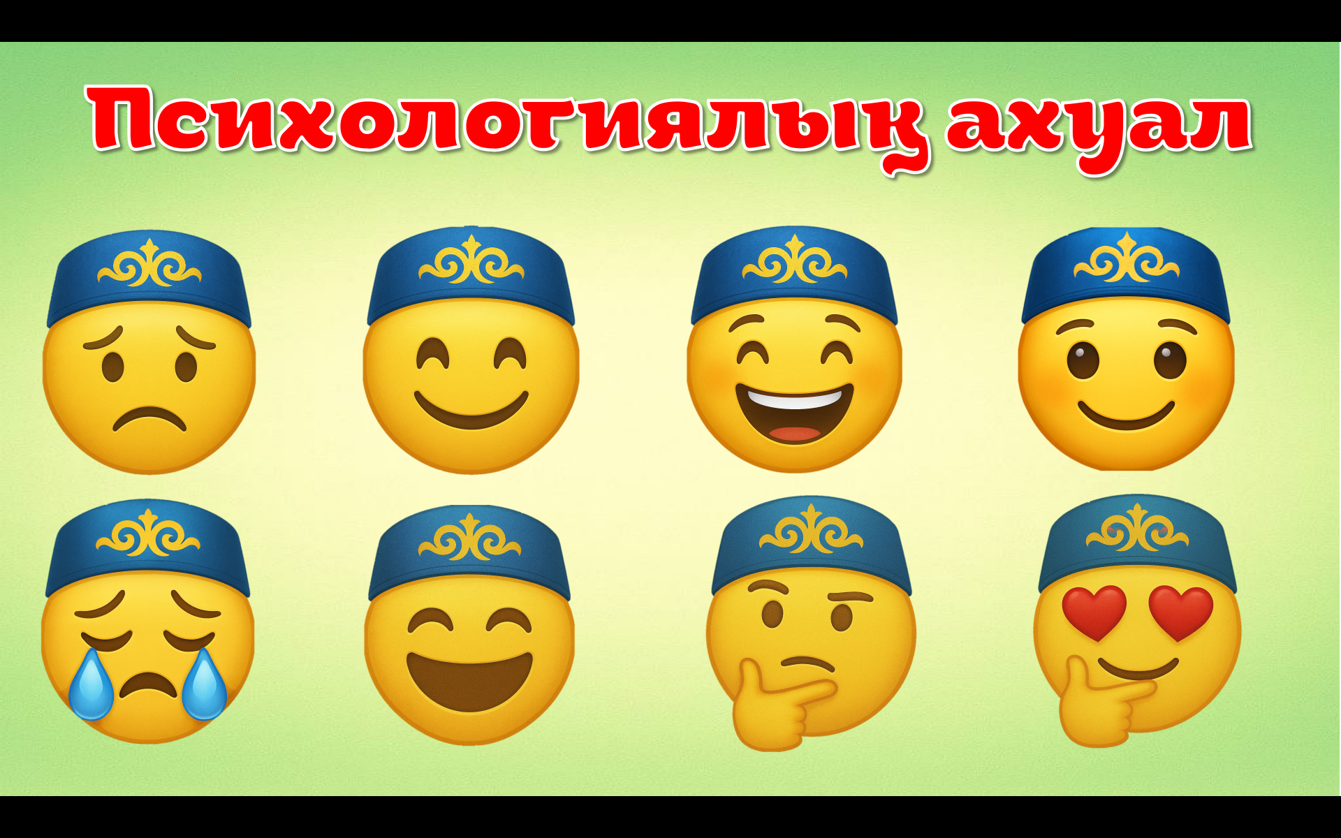 Ұйымдастыру: Сәлемдесу, түгендеу, оқу жабдықтарын тексеру. Психологиялық ахуал. Смайликтер арқылы көңіл - күйлерін көтереді.