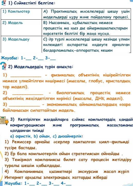 - модельдердің түрлерін анықтайды (1 ұпай)