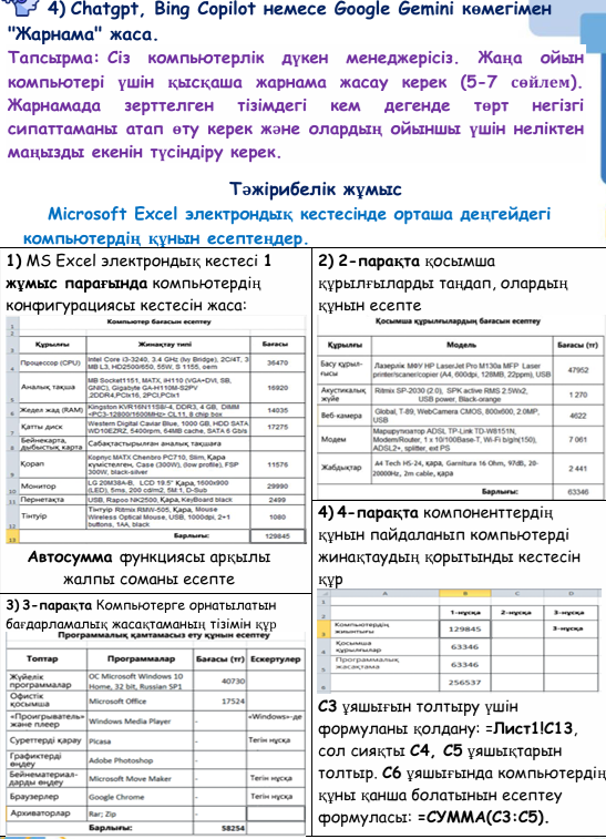 ДК, оқулық, жұмыс парағы Жұмыс парағы, оқулық Жасанды интеллект (ChatGPT/ Gemini/ YandexGPT/ Copilot) |