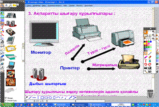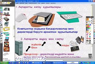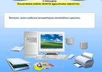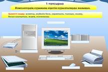 - Компьютер құрылғыларымен танысады, алған білімдерін тапсырма орындау барысында қолданады.
