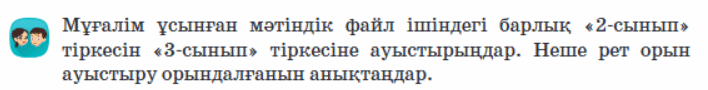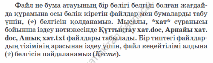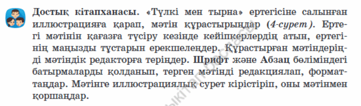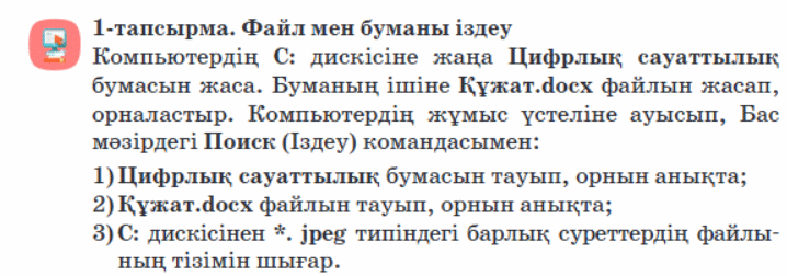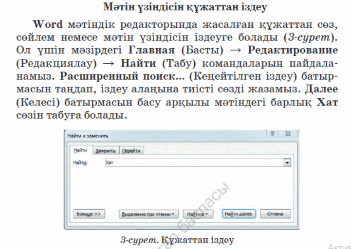 3.3.1.1 ақпарат іздеуді іске асыру (құжаттағы мәтін үзіндісі); 3.2.1.5. суреттерді мәтінге енгізіп, реттеу |
