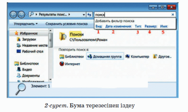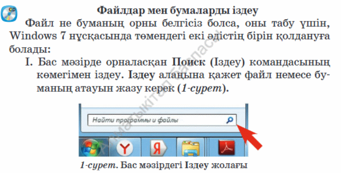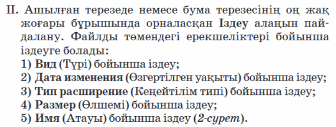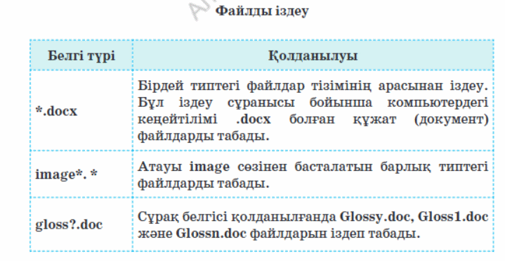 Компьютерде және құжатта ақпарат іздеу. |