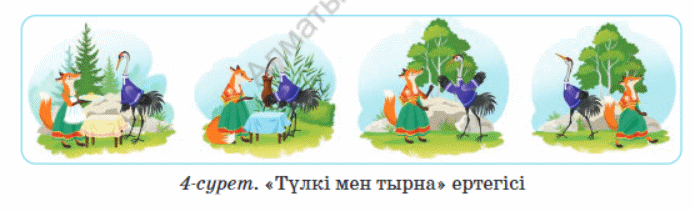 Дискриптор: «Түлкі мен Тырна» ертегісіне салынған иллюстрацияға қарап, мәтін құрастырады Жұптық жұмыс 2 тапсырма «Ойлан, жұптас, бөліс» әдісі арқылы сұрақтарға жауап беріп, жұбына ойын бөліседі.Керекті мәліметтерді дәптерге жазады. - Дескриптор: Ойынның мақсаты мен түпкі нәтижесін айтады Ойынның кейіпкерін біледі Жеке жұмыс. Компьютермен жұмыс 3-тапсырма «Миға шабуы» әдісі