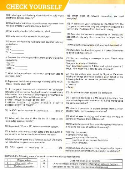 1. What is your IP address? 1. IP-мекен-жайыңыз қандай? What is a spreadsheet? Электрондық кесте дегеніміз не? |