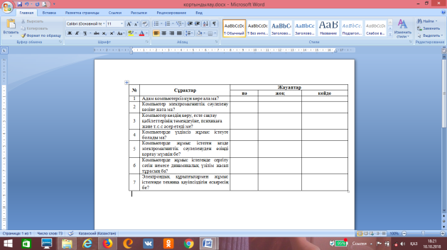 Барлық оқушылар: Компьютердің және техникалық құрылғылардың адам ағзасына қалай әсер ететіні және қорғану тәсілдері жайлы ақпарт біледі