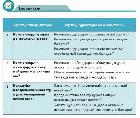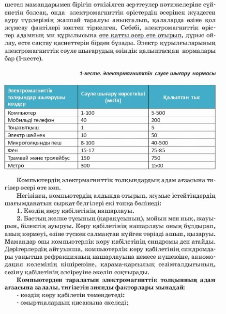 8.4.1.1 адам ағзасына түрлі электронды құрылғылардың әсері туралы мысал келтіру және қорғану тәсілдерін тиімді қолдану |
