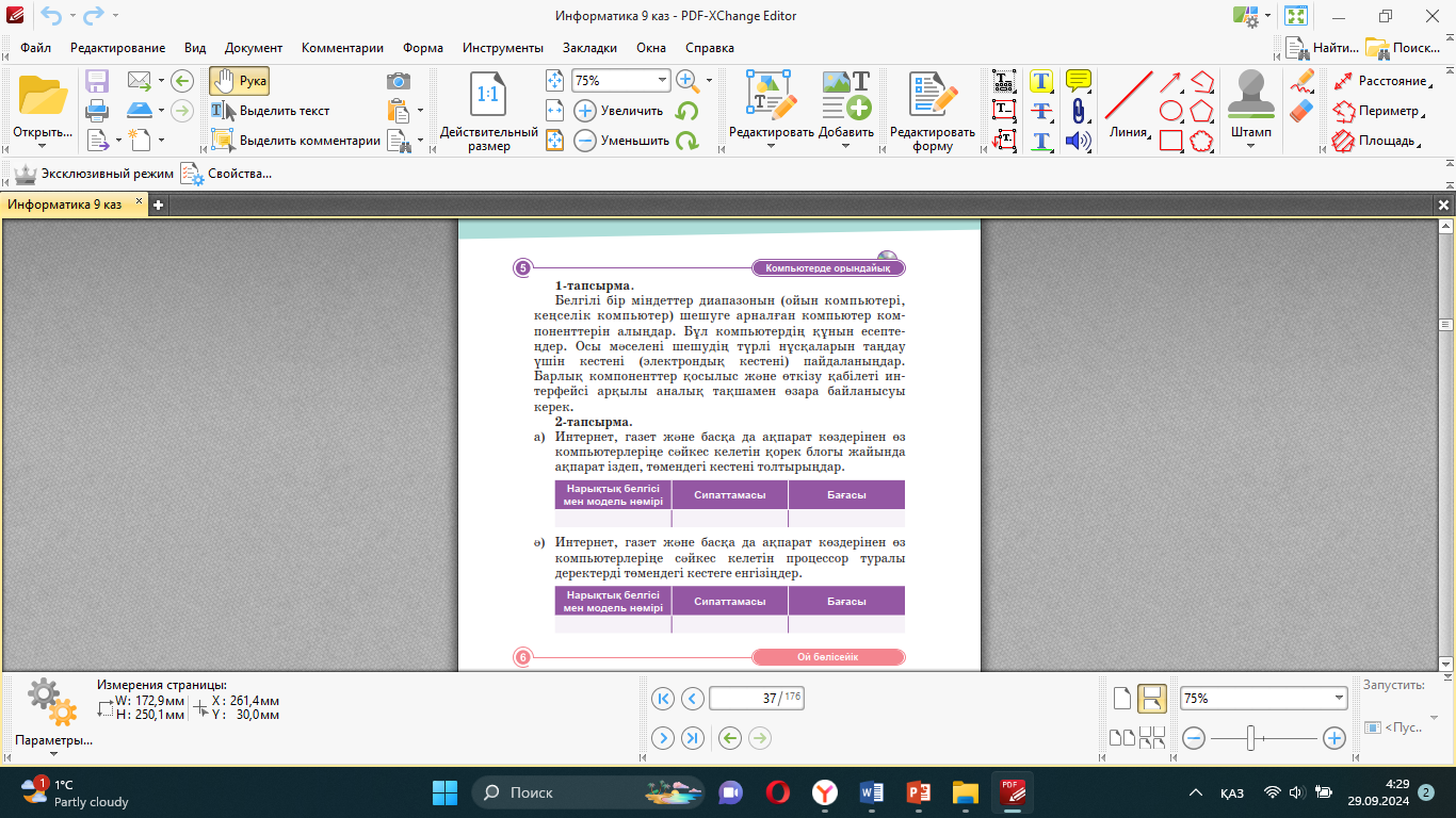 Компьютердің конфигурациясы 9 сынып ҚМЖ