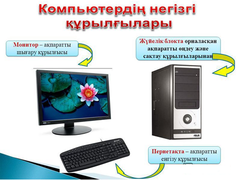 негізгі жұмысын атқаратын процессор (компьютердің «миы») және жады