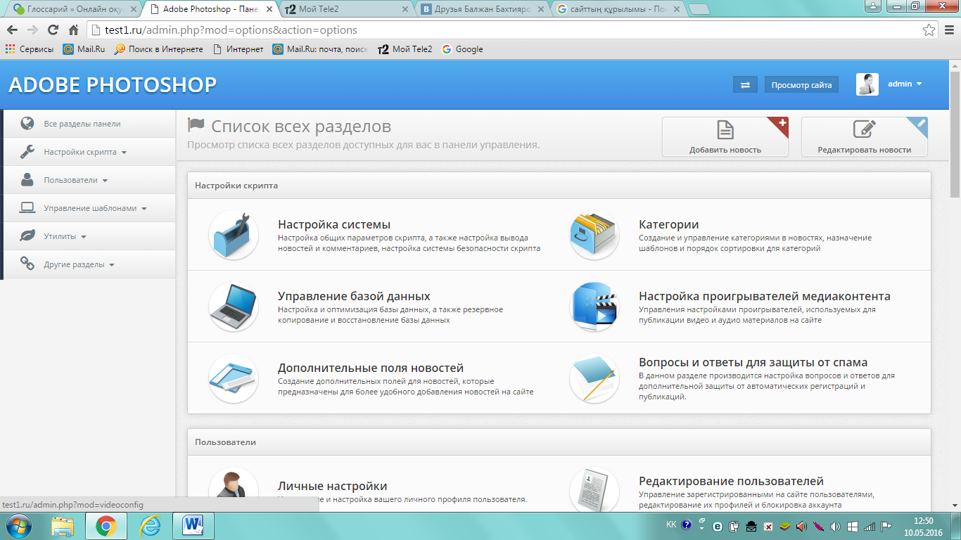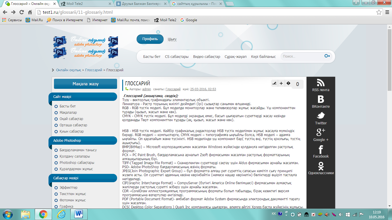 HTML+PHP тілінде құрылған Adobe Photoshop программасының оқулығын үйренушілерге оқып-үйретіп, осы программаның қолданылу мүмкіндіктерін терең игеріп, білімін толықтыруға мүмкіндік береді.