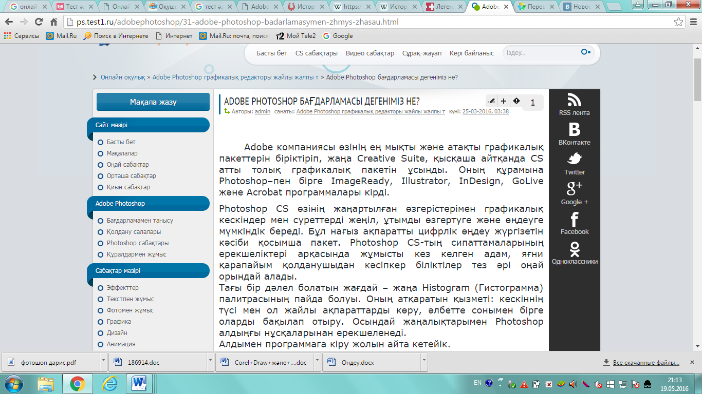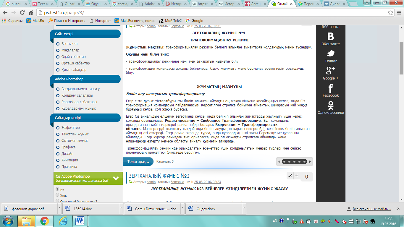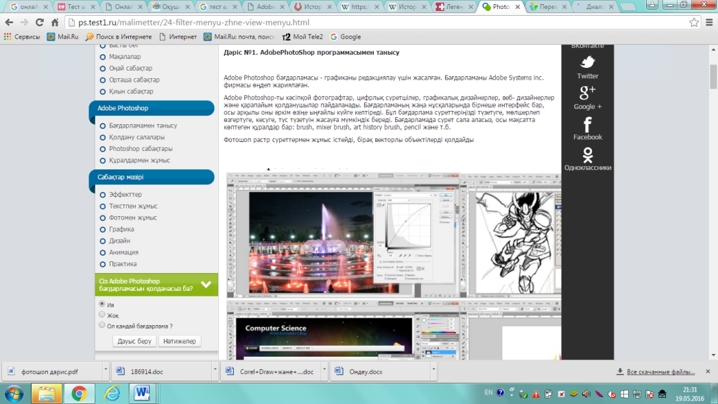 2.2 Adobe Photoshop онлайн оқулығын компьютерлік графика пәніне