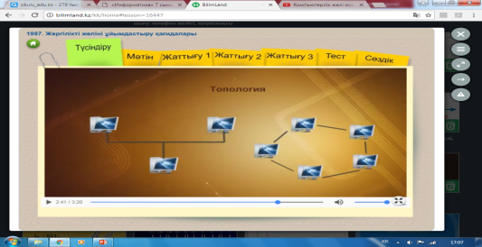 Оқушыларға жеке, жұптық, топтық тапсырмалар бере отырып, компьютерлік желілер және желілерді топтастыруды үйренді.