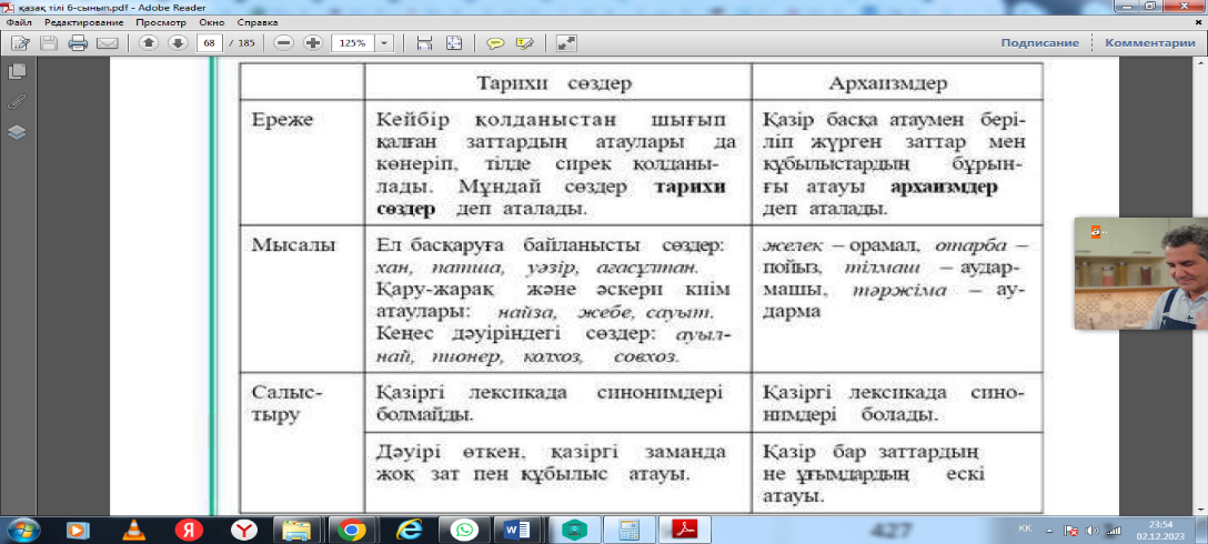 Берілген сөздерді архаизмдер мен тарихи сөздерге жіктейді. Берілген сөздермен сөйлем құрайды.