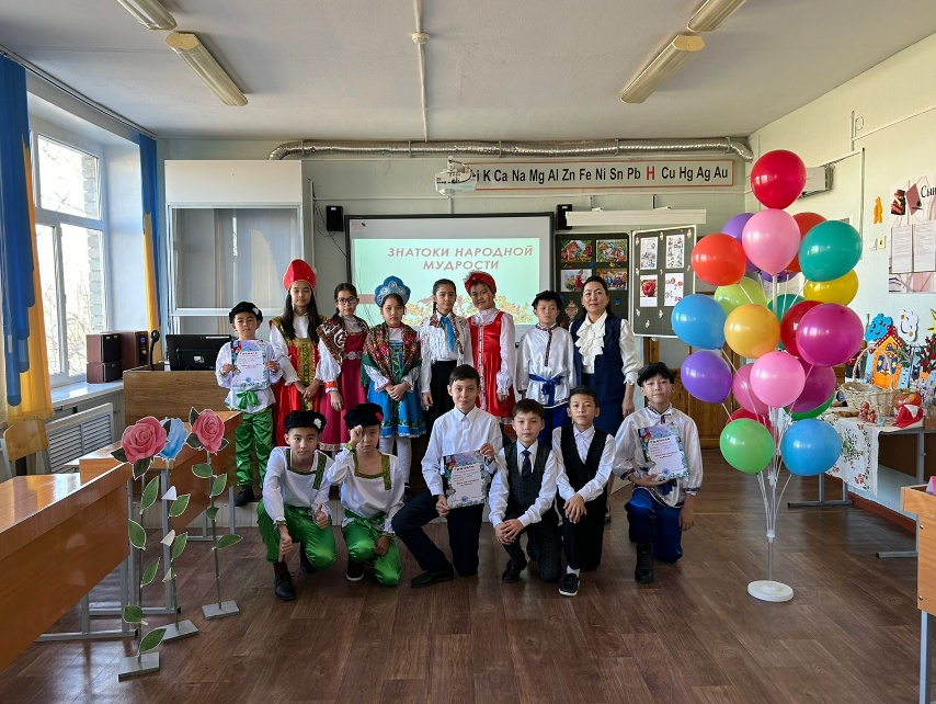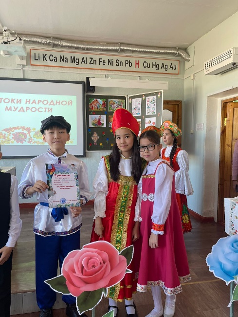 Ведущая 2: Итак, начнём наш конкурс «Знатоки народной мудрости» среди 5-6 классов в форме соревнования и выявим лучших знатоков народного творчества. Сегодня соревнуются 3 команды. Соревноваться вы будете не в силе и ловкости, а в знаниях - кто больше знает и быстрее соображает. За каждый правильный ответ вы будете получать один балл, которые будут суммироваться с заработанными баллами при выполнении заданий.
