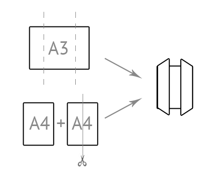 Возьмите плотную бумагу формата А3 или два листа формата А4 и сложите их вот так: