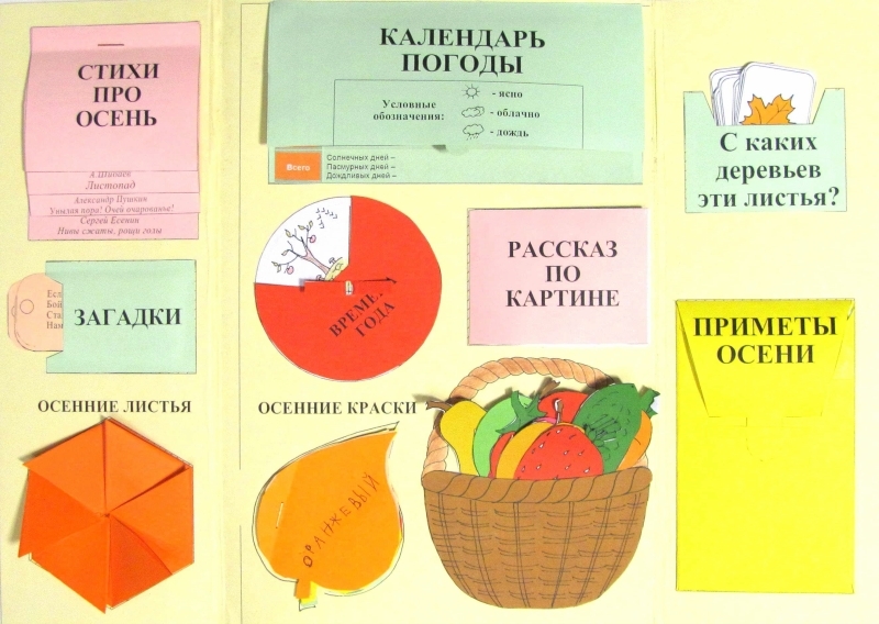 Лэпбук состоит из папки формата А3, в которую вклеиваются кармашки, книжки-раскладушки, окошки и другие детали с наглядной информацией по теме Лэпбука: от интересных игр до лексики и большого количества познавательной информации.