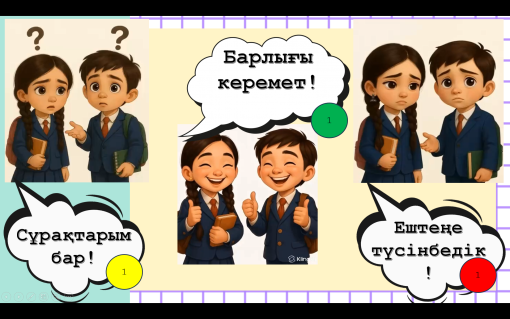 https://youtu.be/4Qs6DJQH-Yw?feature=shared Презентация Оқулық Жұмыс дәптер Презентация Жұмыс дәптері Оқулық ЖИ бейнеролигі KlingAI, Chat GPT Презентация Дәптер Оқулық Таратпа қағаздар ЖИ бейнеролик C.ai, Canva Компьютер Презентация Оқулық Таратпа қағаздар Презентация Бейнеролик https://wordwall.net/ru/resource/81572102 Презентация Презентация Chat GPT Canva Picsart KlingAI Бағалау парақтары Оқулық Күнделік |