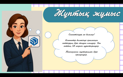 Топтық жұмыс. ЖИ бейнеролигі арқылы топтық тапсырма беріледі.