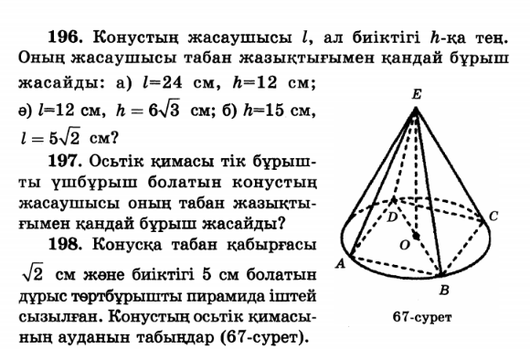 ауданын анықтайық. Суреттен конустың бүйір бетінің ауданы