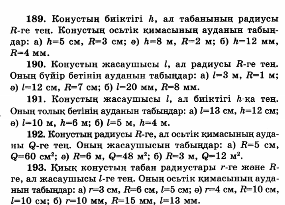 Қорытынды жасап, конустың бүйір және толық беттерінің аудандарының формулаларын енгізіңіз. Оқушыларды қысқаша конспект жазуды сұраңыз. Жеке жұмыс 15 минут