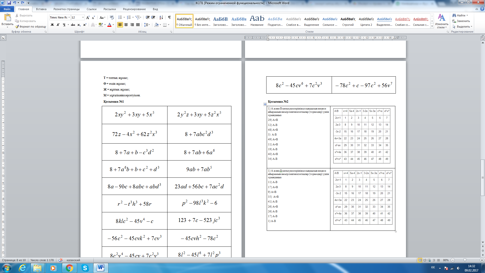 1) А және В көпмүшелерінің қосындысын немесе айырымын нөмірленген клеткалар (торкөздер) үшін орындаңыз 29) А+В 12) А-В 48) А+В 3) А-В 49) А+В |