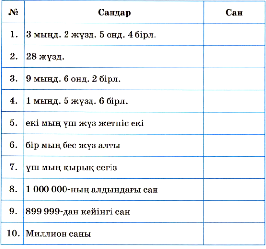4-тапсырма. Сандарды жаз.