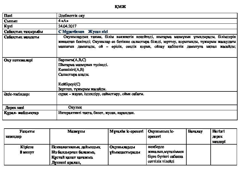 Оқушылар топтық және жеке жұмыстар арқылы әдеби талдау жасау тәжірибесін жетілдіріп, әдебиетке деген қызығушылығын арттырады.