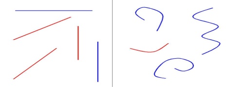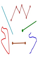 Сызықтарды дәптерлеріне сыздыру.Түрлі түсті қаламдар арқылы түзу,қисық сызықтар сыздыру. Оқушылар мен ойын ойнату. «Орнын тап» әдісі арқылы геометриялық фигуралардан қима жасап солар арқылы әр түрлі заттар жасау.