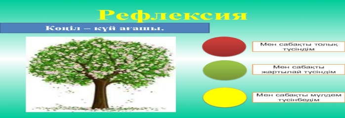 Жаңа тақырыпты меңгереді. Суреттердегі бояулардың түрлі түсті екендігін түсінеді. Сабаққа қатысып,сұрақтарға жауап береді. Суреттердегі өзгерістерді айтады. Сурееттердің қайсысы ұнағанын түсіндіреді. Сұрақтарға жауап береді. . Суретпен жұмыс Сергіту сәті Сызықтардың қағаздағы ізін сызу. Сұрақтарға жауап береді. Жылы және суық түстерді атайды. Түрлі-түсті бояулармен салынған суреттер. Кемпірқосақтың суретіне қарап түстерді айтады. Кемпірқосаққа қарап түстерді атайды. Сұрақтарға жауап береді. Ермексаздан Кемпірқосақ жасайды. Жұппен жұмыс жасайды. Қауіпсіздік техникасы ережесін дұрыс пайдаланады. |