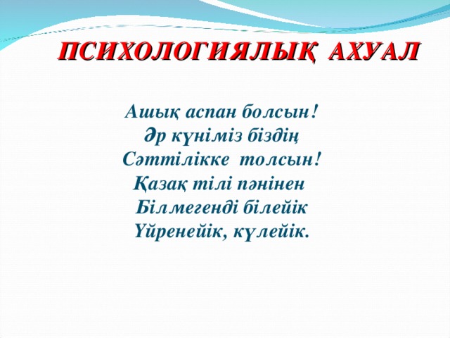 II.Шаттық шеңберін құру;Өлеңді хормен жақсылап айту. Бір бірімен жақсы тілектер айту. |