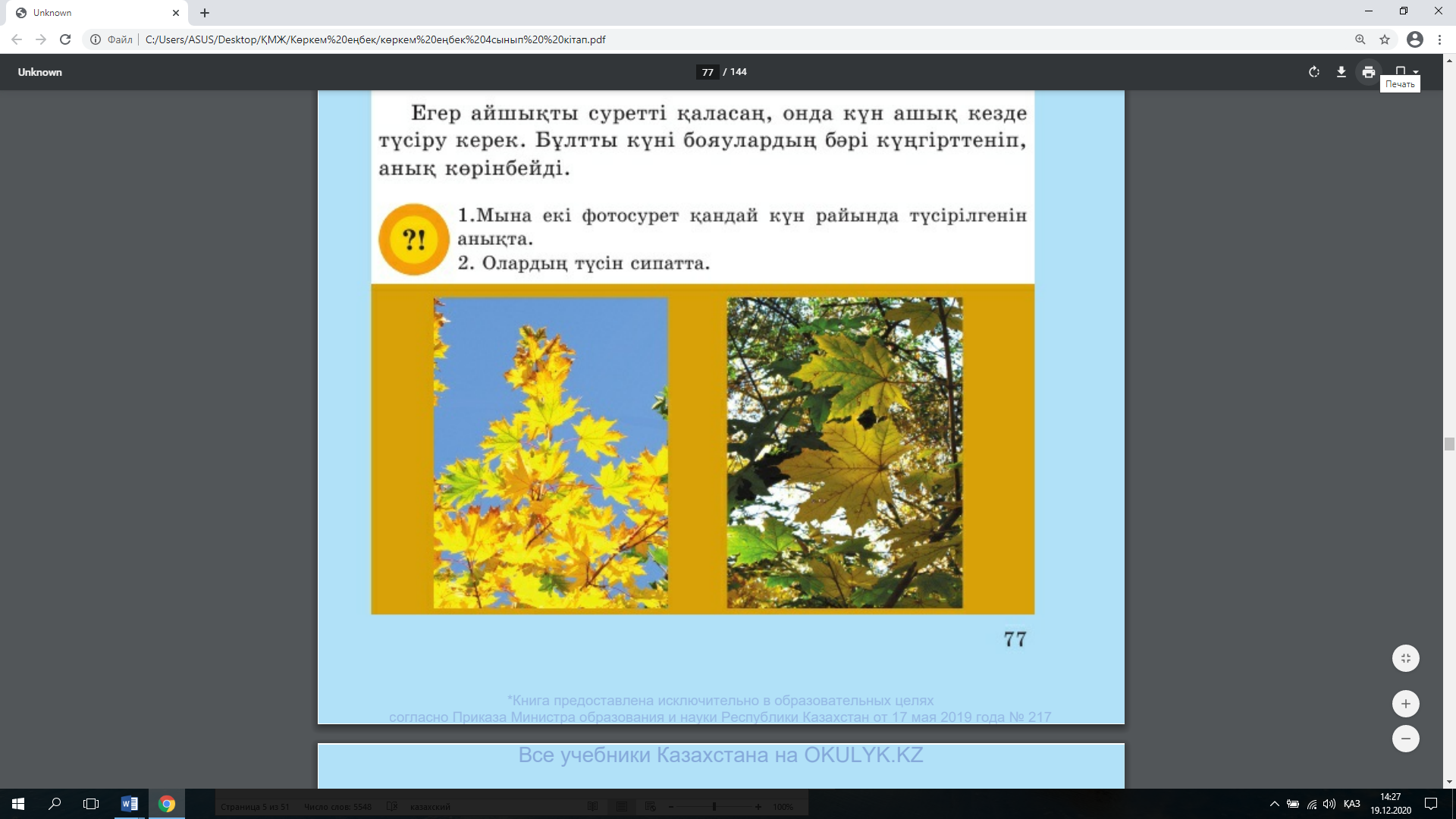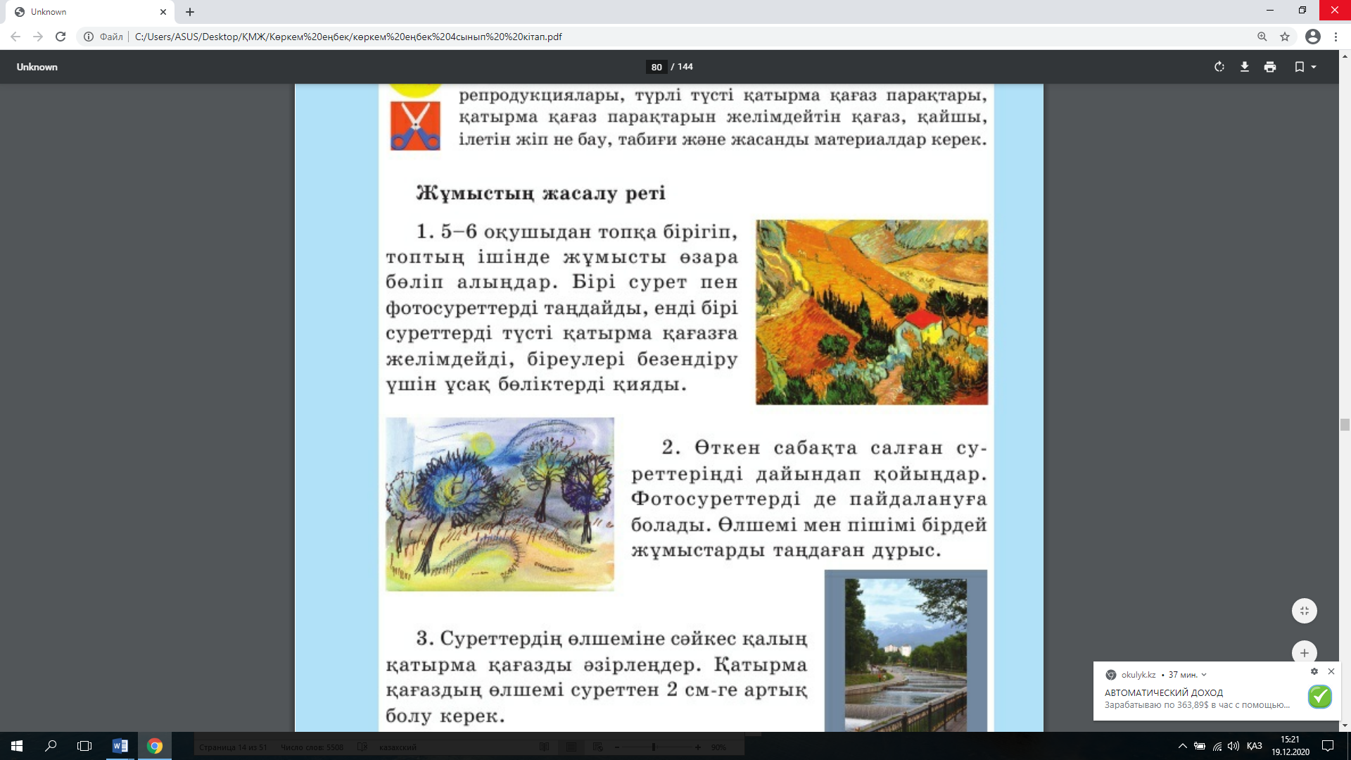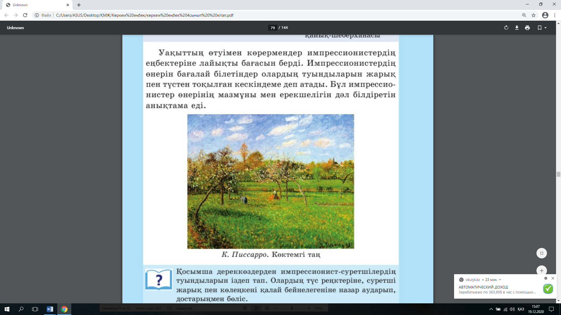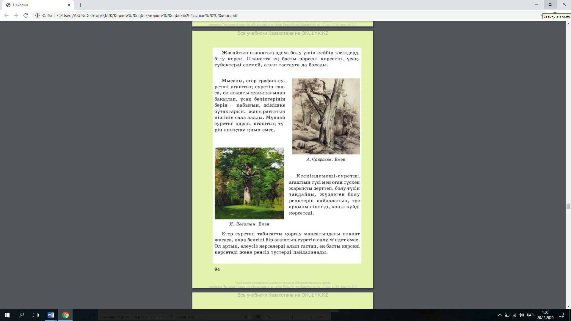 Оқулықта берілген суретшілер туындыларындағы пейзаждармен танысып, сұрақтарға жауап бер. |