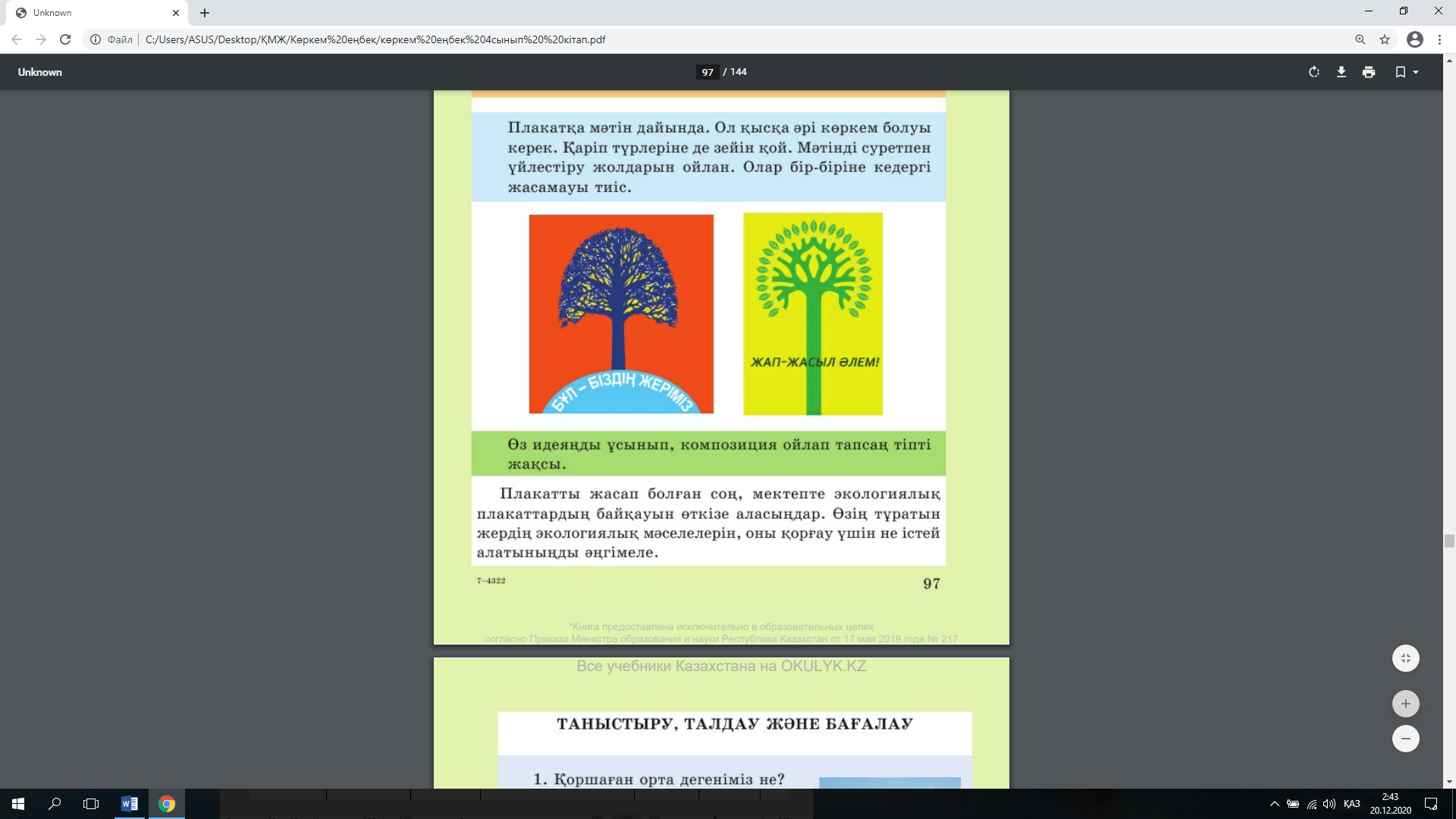 4-сынып оқулық, ДК, жұмыс дәптері. |