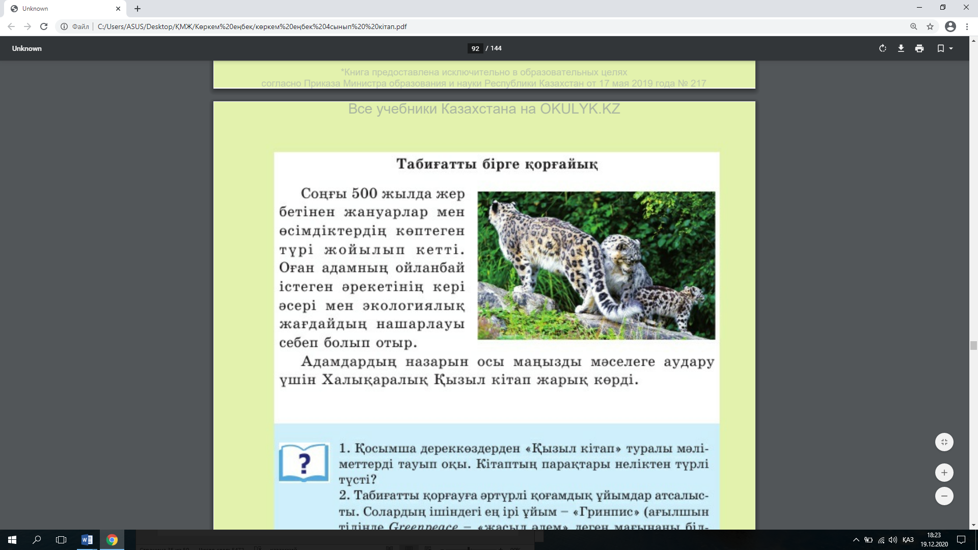 1.Қосымша дерреккөздерден «Қызыл кітап» туралы мәліметтерді тауып оқы. |